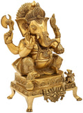 17" Superfine Crowned Lord Ganesha Seated on a Designer Chowki | Handmade Brass Sculptures