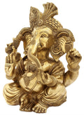 18" Seated Turbaned Lord Ganesha In Brass | Indian Handcrafted Idol