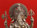 23" Ganesha Seated on His Rat Wearing a Leafy Crown In Brass Dimensions