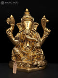 The 4" Lord Ganesha - The Destroyer of Obstacles | Brass Sculpture is a compact devotional brass statue that embodies traditional Indian metalwork in a contemporary scale. Cast in brass, the figure is hand finished by skilled artisans. Crisp modeling captures Ganesha's distinctive features, from the elephant head to the ornate jewelry and the curved trunk. A warm antique patina and a subtle satin sheen accent the craftsmanship without overpowering the form. In Indian art, Ganesha is a symbolic figure associated with beginnings and the removal of obstacles, rendered here through balanced proportions and refined detailing. The sculpture communicates that heritage through its presence rather than prescriptive claims. Ideal for a home temple, meditation space, shelf as a decor accent, or a thoughtful gift for collectors, this piece invites quiet reflection and reverent display. Exotic India Art presents this handcrafted work as part of its commitment to authentic Indian sculpture and artisanal quality.