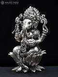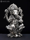 4" Small Superfine Four Armed Blessing Lord Ganesha | Silver Plated Brass Statue
