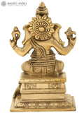 6" Lord Ganesha Seated on High Pedestal In Brass | Handmade | Made In India