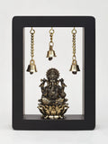 7" Lord Ganesha Seated on Lotus in Wood Frame | Brass Statue | Wall Hanging