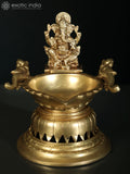 8" Designer Ganesha Lamp in Brass with Peacocks