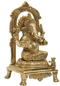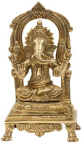 9" Lord Ganesha Seated on Throne with Kirtimukha Prabhavali In Brass | Handmade | Made In India