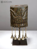 13" Wooden Designer Candle Holder with Dangling Bells in Brass