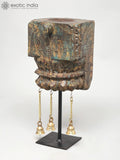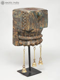 14" Hand-Carved Wooden Candle Stand with Brass Bells | Home Decor