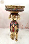 21" Inlay Brass Urli with Bells the Base of Royal Elephant | Home Decor Gift