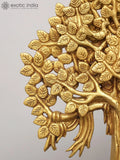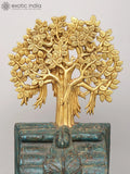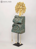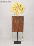 27" Wooden Showpiece with Brass Tree of Life and Hanging Bells on Iron Stand | Home Decor