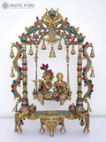 29" Pair of Radha-Krishna on Kirtimukha Swing with Bells | Brass with Inlay Work