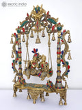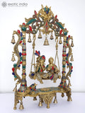 29" Pair of Radha-Krishna on Kirtimukha Swing with Bells | Brass with Inlay Work Dimensions