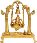 9" Lord Ganesha on a Swing with Bell Atop In Brass | Handmade | Made In India