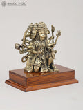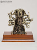 In traditional Indian art, Panchamukhi Hanuman symbolizes protective strength and resilient courage, qualities that find expression in temple and home contexts. This brass statue on a wood base is designed for placement in spaces that invite focus and quiet reflection.