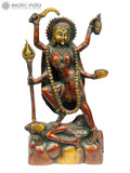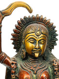 The 8" Goddess Kali In Brass | Handmade | Made In India is a brass statue and handcrafted sculpture that depicts the goddess Kali in a compact eight-inch form. This piece reflects traditional Indian metalwork and serves as a decorative figure in personal spaces. Cast in solid brass and finished with a warm antique patina, the sculpture reveals chased textures and defined features. Artisans render Kali with multiple arms and a dynamic posture, capturing the strength and intensity that characterize this traditional icon in metal. In Hindu artistic tradition Kali is depicted as a dynamic force of energy and time. This sculpture translates that symbolism into form through bold contour work and attentive surface treatment, inviting study for admirers of Indian sculpture. Suitable for a home temple, meditation corner, or decor accent, it also makes a meaningful gift for collectors of Indian art. Each piece is handcrafted by skilled artisans with natural variations in tone and pattern, underscoring its artisanal heritage. From Exotic India Art, a heritage brand of authentic Indian art and craft.