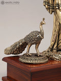 12" Superfine Idol of Lord Krishna Playing Flute in Tribhangi Gesture with Peacock and Wood Base | Brass Statue Dimensions