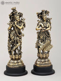 9" Superfine Radha and Krishna - Symbol of Eternal Love and Harmony with Wood Base | Brass Sculpture