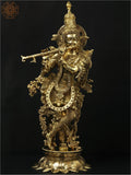25" Superbly Adorned Lord Krishna Standing on Lotus Pedestal Playing Flute In Brass | Handmade | Made In India