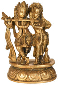 10" Krishna Teaching Flute to Radha In Brass | Handmade | Made In India is a brass statue and handcrafted sculpture that captures Krishna guiding Radha through a flute moment with calm, devotional grace.