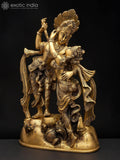 The 11" Divine Love - Radha Krishna in Graceful Pose | Brass Statue is a brass decorative sculpture that depicts Radha and Krishna in a graceful, intimate posture. Cast in solid brass and finished with a warm patina, the piece emphasizes clean lines, balanced proportions, and meticulous detailing that reflect traditional metalwork. The figures are rendered with soft curves and uplifted hands, evoking harmony and devotion celebrated in Indian art without making religious claims.
