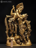 11" Divine Love - Radha Krishna in Graceful Pose | Brass Statue