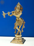 The 12" Brass Lord Krishna Playing Flute is a brass sculpture that portrays Krishna in a flute playing pose, created as a refined decorative figure for contemplative and aesthetic spaces.
