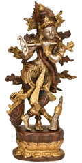 12" Lord Krishna Idol Playing Flute | Handmade Brass Sculpture | Made in India is a handcrafted brass statue that portrays Krishna in a serene flute performance.