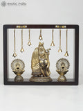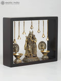 12" Superfine Fluting Radha Krishna with Peacock Lamps | Wood Framed Brass Sculpture | Wall Hanging Dimensions