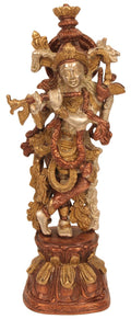 13" Fluting Krishna In Brass | Handmade | Made In India