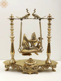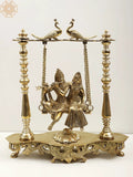 15" Radha Krishna on Peacocks Perched Swing in Brass | Handmade Dimensions