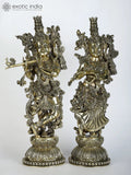 15" Superfine Pair of Radha - Krishna Statues in Brass