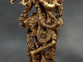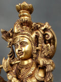 The 18" Brass Lord Krishna Statue Playing Flute is a brass statue in the spiritual idol and decorative figure category. Crafted from solid brass, it carries a warm finish with a hand tempered patina that highlights the careful modeling of Krishna's flute, crown, and robes. Handcrafted by skilled artisans, the sculpture reveals refined chiseling and a subtle texture that brings depth to the form.