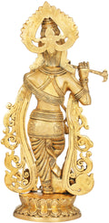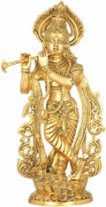 18" Fluting Krishna with Peacock In Brass | Handmade | Made In India