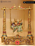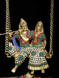 18" Radha - Krishna on Swing | Brass Statue with Inlay Work