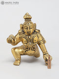 2" Little Krishna Holding Laddu in Hand | Brass Sculpture