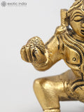 2" Little Krishna Holding Laddu in Hand | Brass Sculpture is a brass statue that sits in the spiritual idol and decorative figure category, sized for intimate display on a shelf, altar, or meditation corner. Cast in brass and finished with a warm, antique patina, the sculpture reveals refined hand shaping and minute detailing. Artisans cast the form and then hand polish and patina to enhance depth in the face, jewelry, and the laddu held in Krishna's hand. While rooted in traditional iconography, this figure is presented as an artistic interpretation that celebrates playfulness and abundance. The emphasis is on form and craft rather than allegorical statements. - Home temple or prayer nook - Meditation space as a focal point - Decor accents on shelves, consoles, or desks - Gifting for art lovers and collectors - Collector display in a curated brass sculpture collection Produced for Exotic India Art, this piece embodies the brand’s commitment to authentic Indian art and handcrafted sculpture, offering a tangible connection to a long tradition of brass artistry.