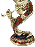 The 20" Brass Lord Fluting Krishna Head with Inlay Work is a brass head sculpture in the devotional figure category, designed to evoke Krishna with his flute in a serene and uplifting profile suitable for sacred spaces and refined decor.