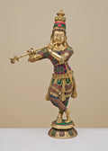 23" Brass Fluting Krishna with Inlay Work | Handmade is a handcrafted brass statue in the decorative figure and devotional idol category. The piece presents Krishna with flute and a poised stance, enriched by fluting details and delicate inlay work that catch the light from every angle.