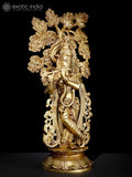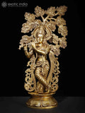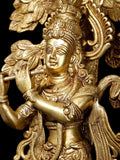23" Lord Krishna Idol Playing Flute Under the Tree | Brass Statue for Decor