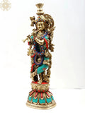 24" Fluting Krishna In Brass | Inlay Work | Handmade | Made In India