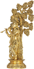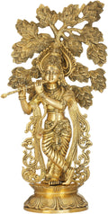 The 24" Krishna Brass Idol Ð Playing Music Under the Kadamba Tree | Handmade in India is a brass statue in the devotional sculpture category.