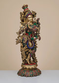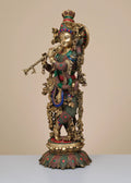 26" Brass Fluting Krishna with Inlay Work | Handmade