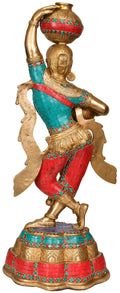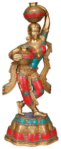 27" Krishna's Gopi Brass Statue with Inlay work | Handmade | Made in India Dimensions