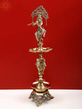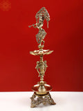 27" Large Fluting Krishna Lamp in Brass | Exquisite Handmade Craft | Authentic Indian Art Dimensions
