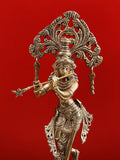 27" Large Fluting Krishna Lamp in Brass | Exquisite Handmade Craft | Authentic Indian Art is a brass lamp sculpture that sits within the decorative and devotional art category. Standing about 27 inches tall, it makes a commanding focal point for a home temple, meditation corner, or refined display shelf.