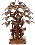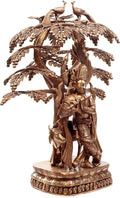 The 33" Krishna Under The Tree Statue with Cow In Brass | Handmade | Made In India is a brass statue in the category of handcrafted sculpture that depicts Krishna beneath a leafy tree with a gentle cow. Cast in brass and finished by skilled artisans, the figure exhibits careful detailing from Krishna's composed expression to the delicate folds of his attire, the textured tree trunk, and the cow at his side. The warm antique patina emphasizes the handcraft and the natural variation achieved through traditional finishing. In Indian art, Krishna with a cow is a pastoral motif that celebrates harmony between divinity, nature, and daily life. This composition conveys balance and serenity, inviting quiet reflection in a meditation corner or display shelf. Suitable for a home temple or meditation space, it also makes a thoughtful gift for collectors of handcrafted sculpture. This piece embodies the artisanal care associated with Exotic India Art and reflects the enduring appeal of brass sculpture made by Indian artisans.