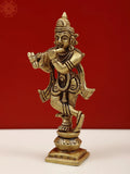 4" Small Brass Lord Krishna Idol Playing Flute Dimensions