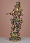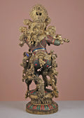 43" Large Brass Fluting Krishna with His Cow | Handmade