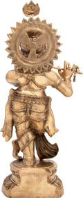 46" Fluting krishna Wearing a Crown with a Peacock Feather In Brass | Handmade | Made In India Dimensions