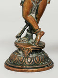The 5 inch Pair of Radha Krishna Brass Statues are a pair of brass sculptures in the devotional figure category depicting Radha and Krishna in a graceful, intimate stance. Cast in solid brass and finished with a warm antique patina, they are hand polished to reveal fine detailing and a smooth surface.