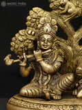 5" Small Lord Krishna Seated Under The Tree with Cow | Brass Statue